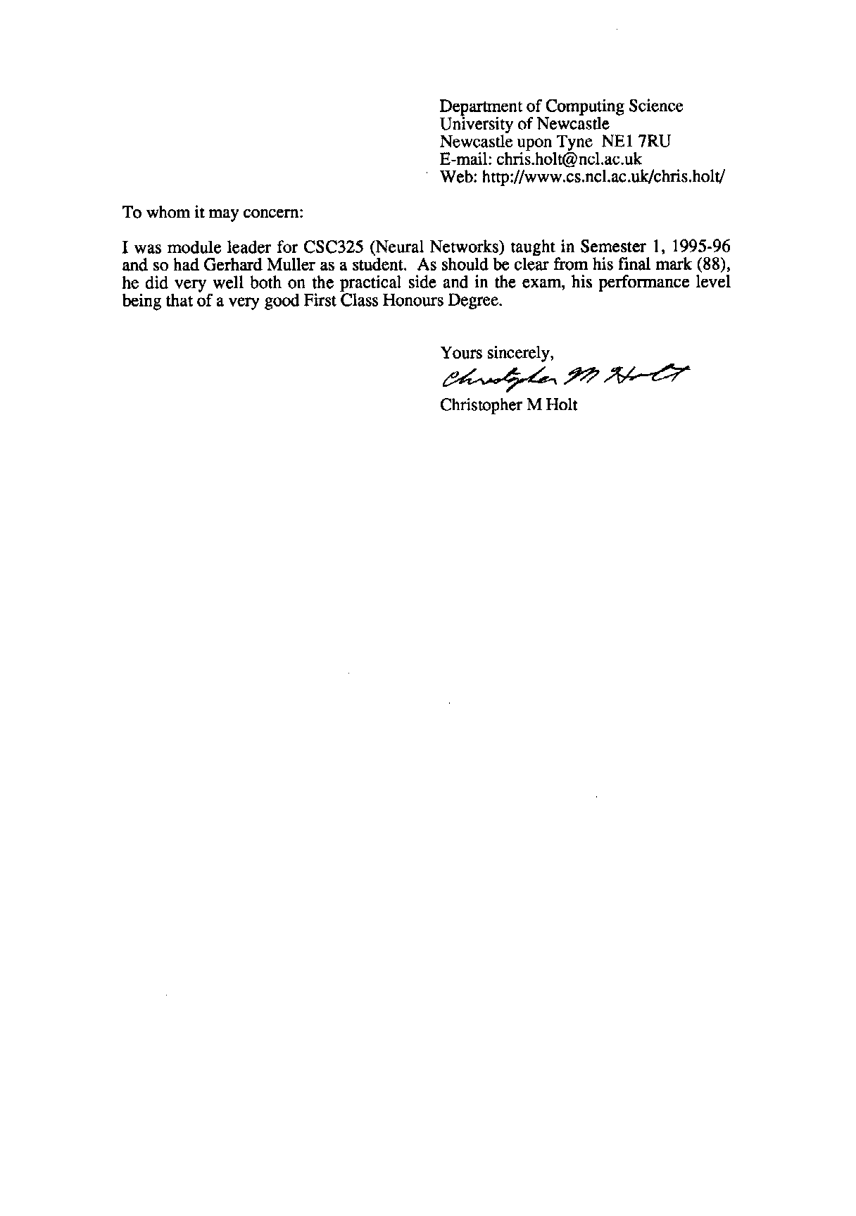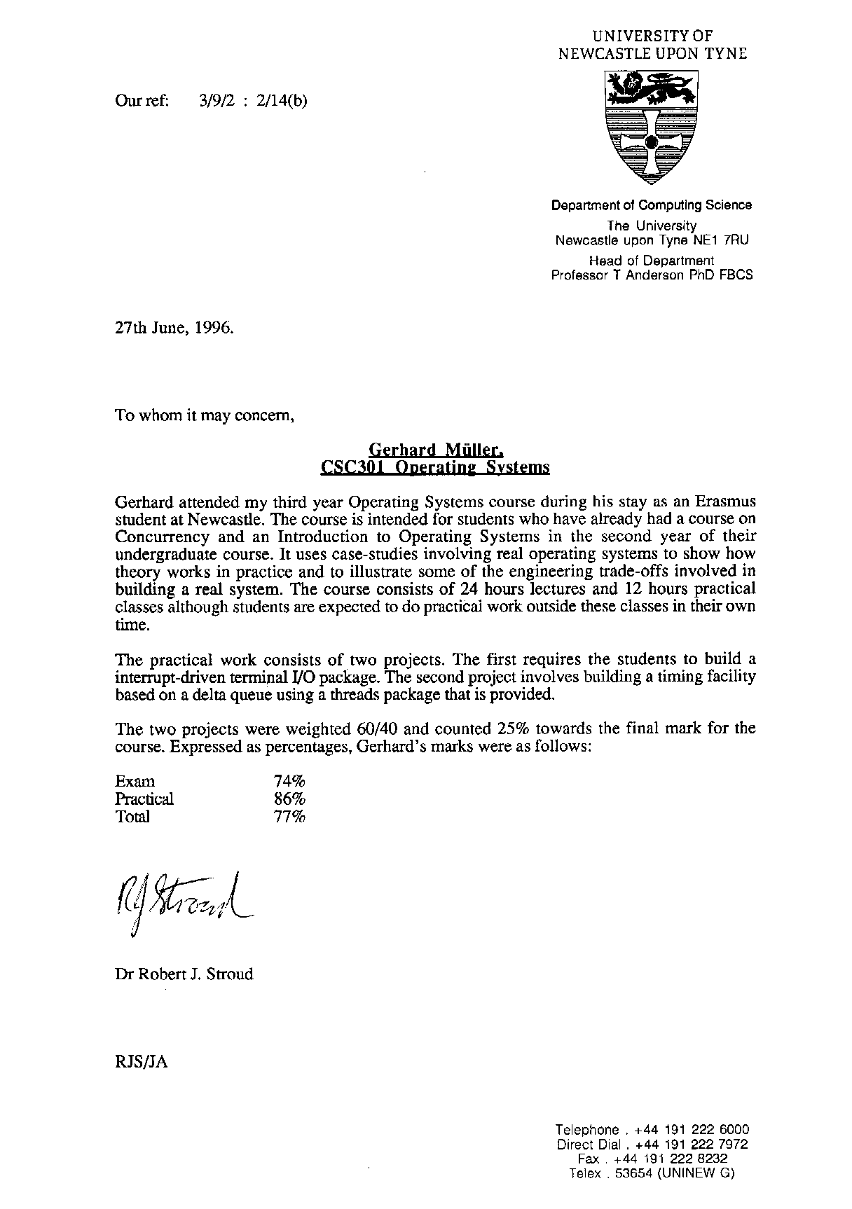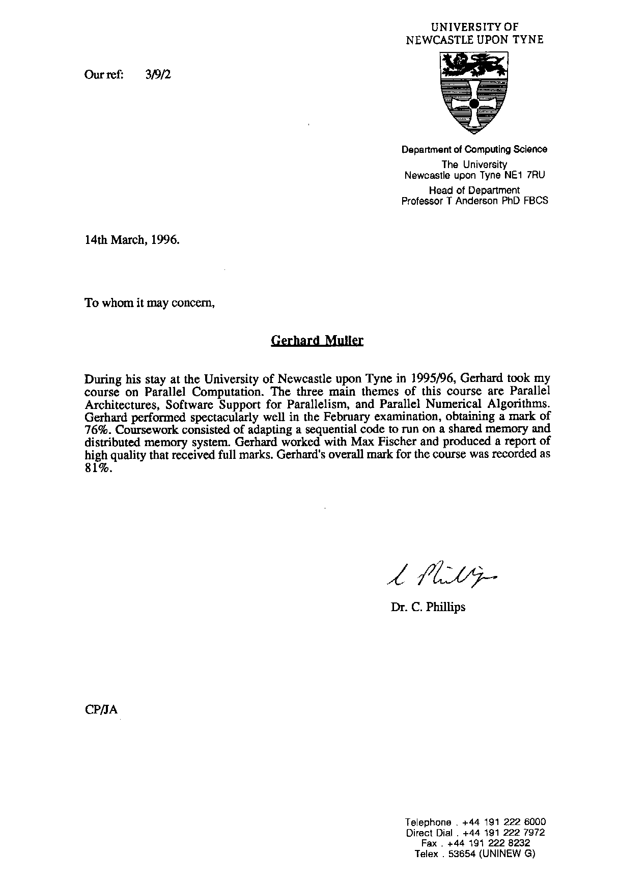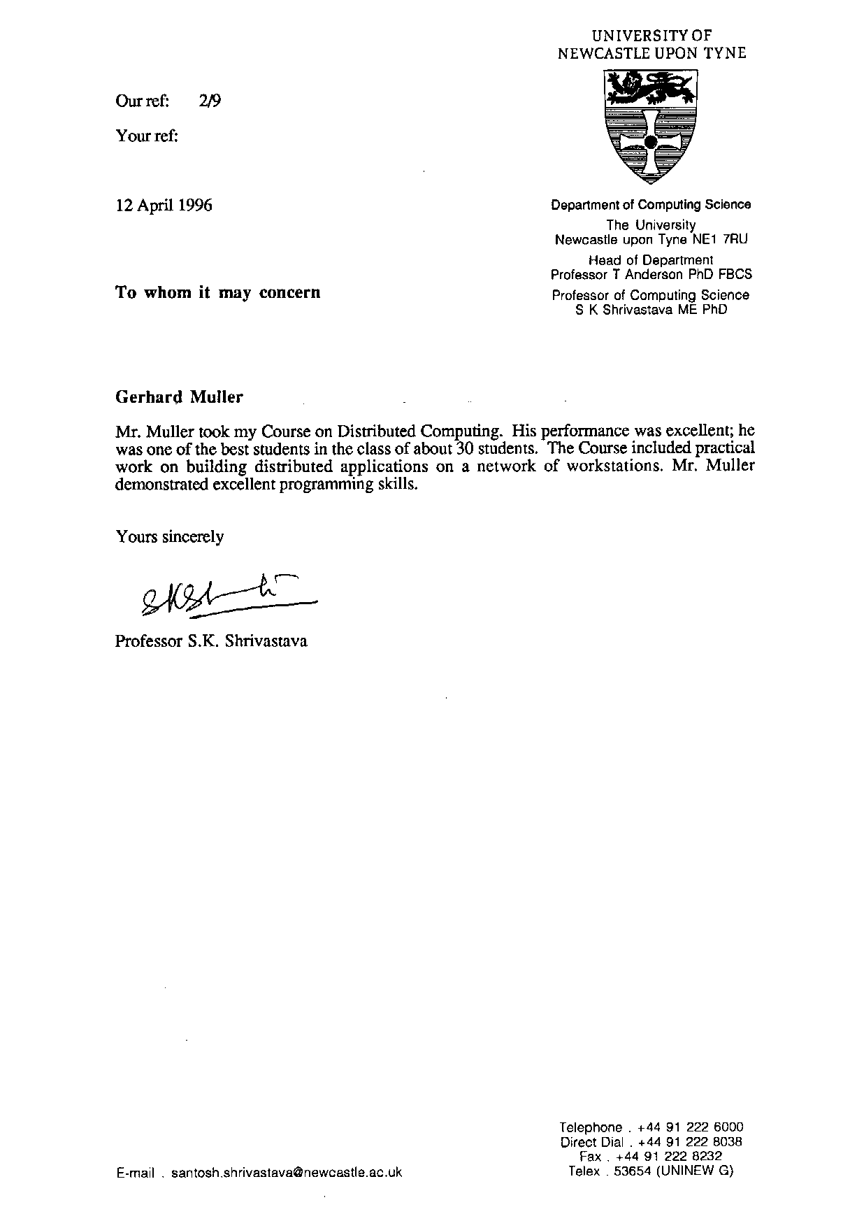 Ich habe zwischen 1. Oktober 1995 und 31. März 1996 in Newcastle upon Tyne, England, studiert.